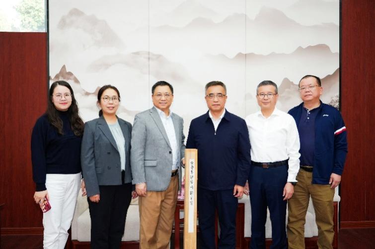 汤涛代表学校向三明学院张君诚校长(右三)赠送《大夏大学西迁纪念碑拓》
